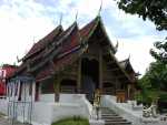 Einer der wenigen verbliebenen Tempel in Chiang Mai mit einem vollständig aus Holz gebauten Viharn. Ein eindrucksvolles Gebäude, in dem sich Thai- und Lanna-Stil vermischen. Ursprünglich war es einmal ein königlicher Palast. |