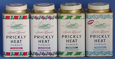 Prickly Heat Powder "Prickly Heat Powder" von "Snake brand" ist das klassische Erfrischungspuder der Thailänder. Hier handelt es sich um das Original, ein kühlendes und beruhigendes Puder, das bei heißem Wetter angenehm kühlend wirkt und effektiv Hautreizungen und Jucken als Folge übermäßiger Schweißabsonderung verhindert. Es wird nach dem Duschen als antiseptisches und absorbierendes Puder auf der Haut verteilt.